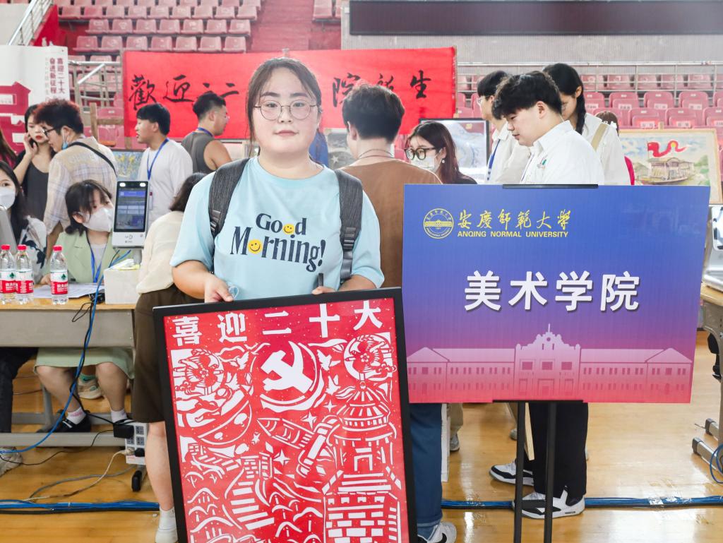 红色剪纸勾勒出蜿蜒壮阔的长城、蓄势待发的火箭;黑色铅笔描绘出疫情当前,国人众志成城、勇担使命;彩色油画棒渲染出形似蛟龙的高铁、筑梦苍穹的宇航员……9月9日,以“喜迎二十大,奋进新征程”为创作主题的270余件作品在龙山校区体育馆与sunbet教学楼展出,为公司迎新现场增添了一道靓丽的风景线。