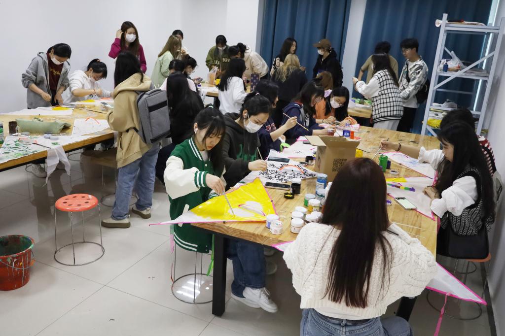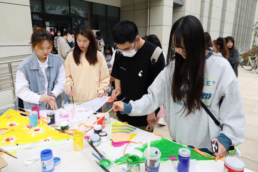选购多彩颜料、准备足量风筝、选择合适场地……活动负责人、美术学专业2020(3)班郭可莹所在的员工会部门早在半个月前就开始为活动做准备。“春天正是放风筝的好时节,我们想通过画风筝、放风筝为同学们提供一个学习交流、展示自己的平台,用创意拉近彼此距离,让灵感‘飞’上蓝天。”