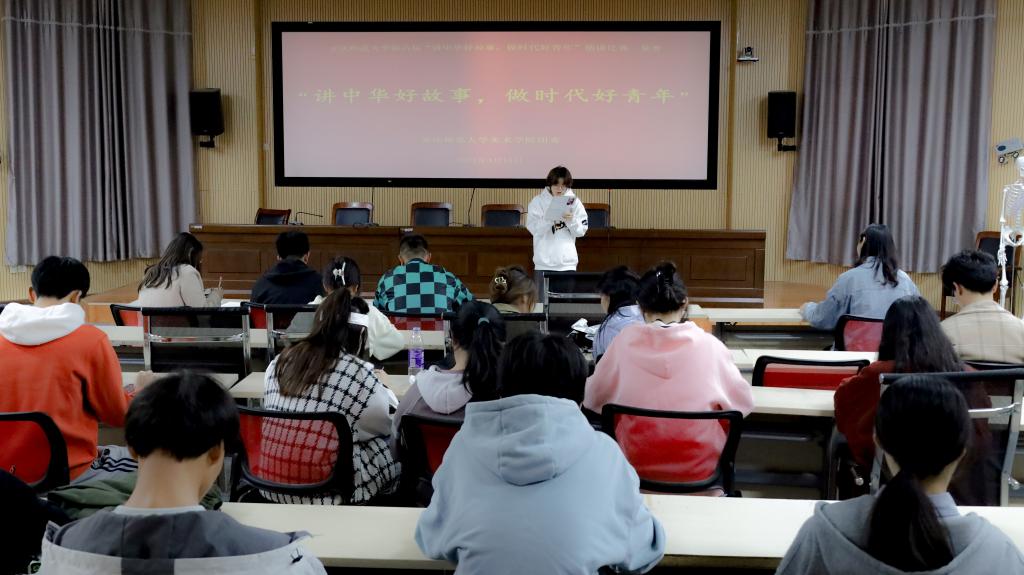 “刚开始时我有点紧张,进入状态之后就完全沉浸其中了。”视觉传达设计专业2020(2)班的贺进动情地向观众讲述了家乡老党员的故事,并表示今后会向身边优秀党员前辈们学习,心怀祖国,为国家和人民奉献自己的力量。“有理想,有本领,有担当。”这是美术学专业2021(1)班的张丽丽对青年的理解,“青春就是应该去奋斗,去奉献,去充实自己。”她讲述了自己对未来、对青年的认识,青年是中国薪火的赓续者,终将在新时代背景下乘风破浪、浩荡千里。