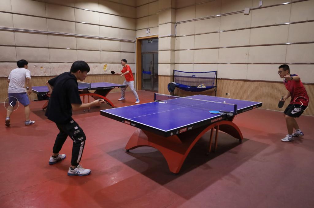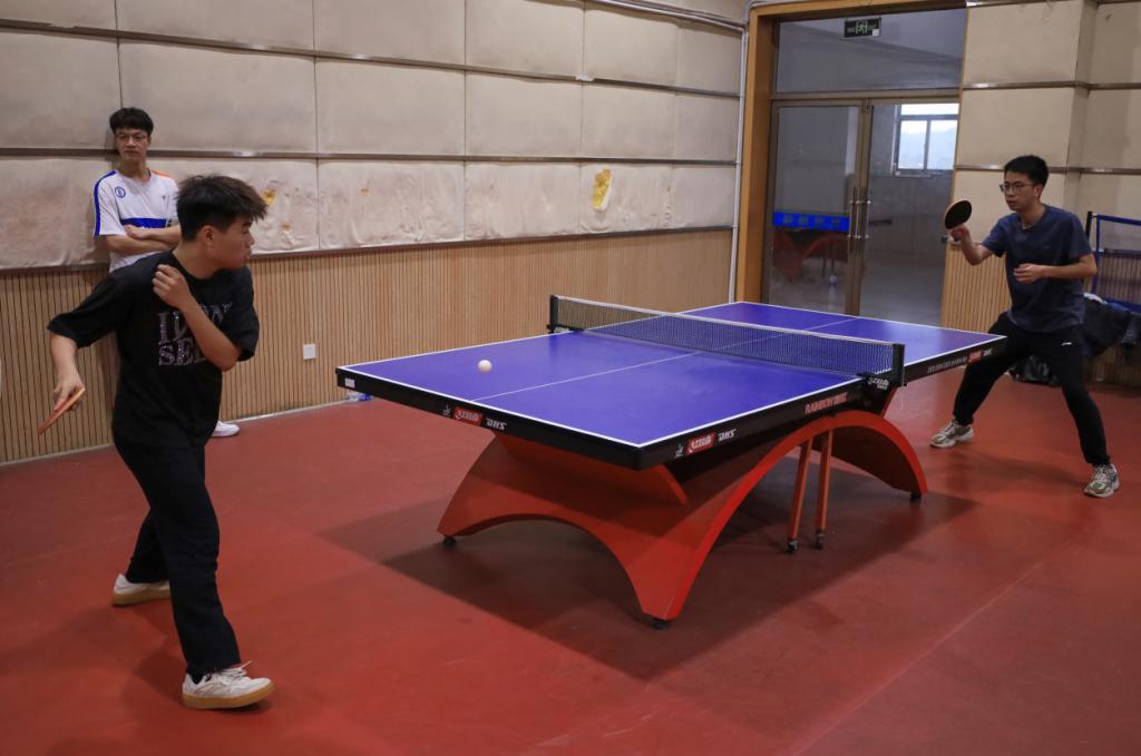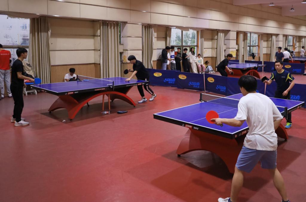 “打得太好了!”“注意防守。”……4月13日,sunbet在体育馆三楼乒乓球室举办师生乒乓球联谊赛,20余名师生参与其中。