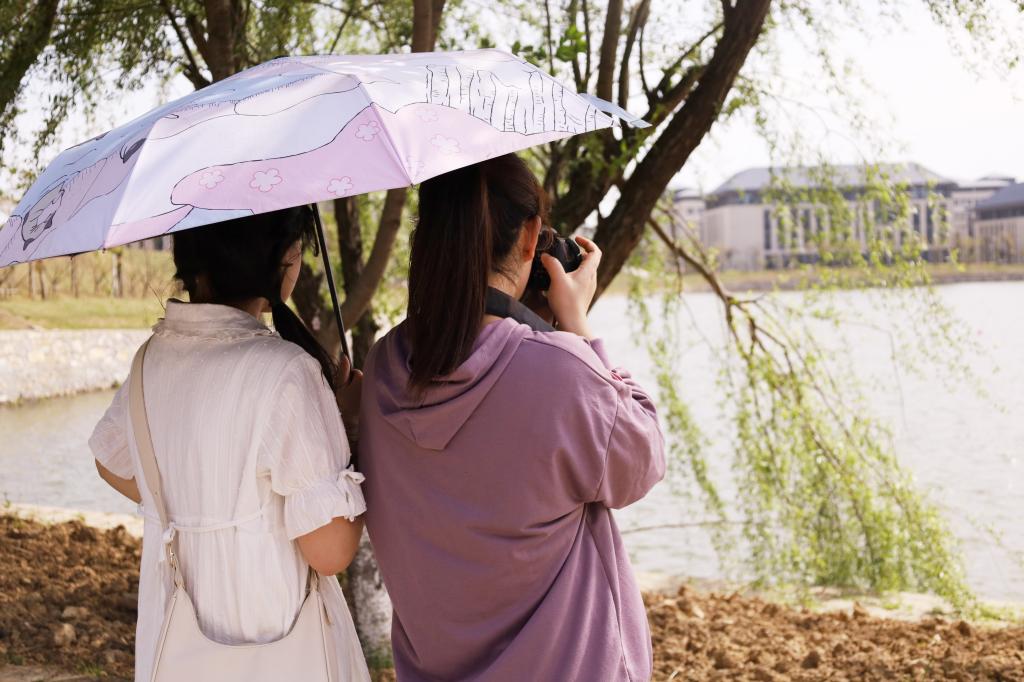 “这是我拍的双龙湖畔,垂柳依依,波光粼粼,真的太美啦!”谈及自己最喜欢的一张照片,设计学类专业2021(2)班的汪圆圆笑称。她表示,自己对摄影一直很感兴趣,摄影能让人放松心情,发现并记录下生活中的美好瞬间,一听说公司摄影俱乐部有摄影踏青活动,自己就立即报名参加了。