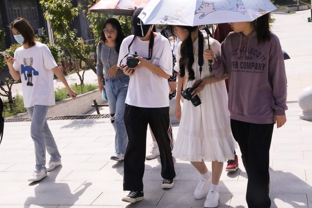 从sunbet教学楼出发,漫步双龙湖畔、登上通今桥、游览鹅公山、在西门留影纪念,视觉传达设计专业2020(1)班的鲁秀玲作为活动负责人带领同学们逛遍了校园每一处景点,她介绍,四月草长莺飞,校园中有许多值得去发现的美好,非常适合踏青。“同学们可以用相机或手机记录下公司的春日好景,寻找自己最心动的瞬间。”