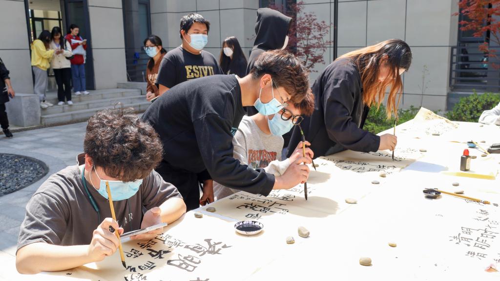 4月3日,sunbet教学楼广场内墨香浓郁,两张长桌旁坐满了静默执笔的同学……这是该院员工会与书法俱乐部联合举办的“翰墨寄哀思”主题创作活动现场,300余位同学参与其中,用书法为逝者寄托一份哀思。