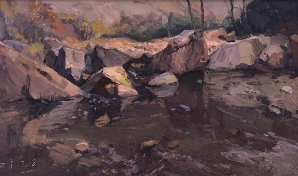 吴老师这些年钟情于以写生的方式来创作,足迹遍布于他生活周围的山山水水,眼光聚焦在一些日常生活的物体上,他总是能从这些平常的物象上发现出一种厚重和朴实的美感 。我们常说艺术需要在生活的土壤里才能生根发展,扎根生活艺术才有生命力 ,从画家展出的这些作品中我们可以感受那种真切的生命力。