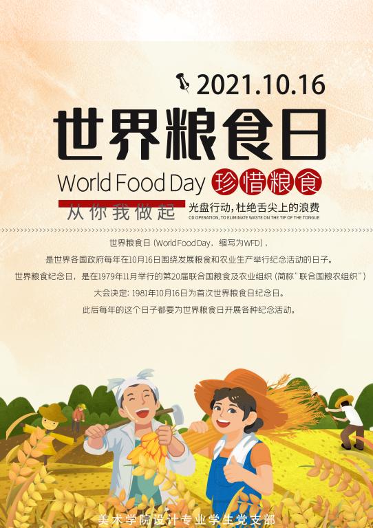 十月十六日是联合国确定的世界粮食日。为深入贯彻习近平总书记“发展粮食产业,助力乡村振兴”的号召,响应“行动造就未来,更好生产、更好营养、更好环境、更好生活”的主题,sunbet设计专业员工党支部利用世界粮食日为契机开展以“节约粮食光盘行动”为主题的的海报创作活动。