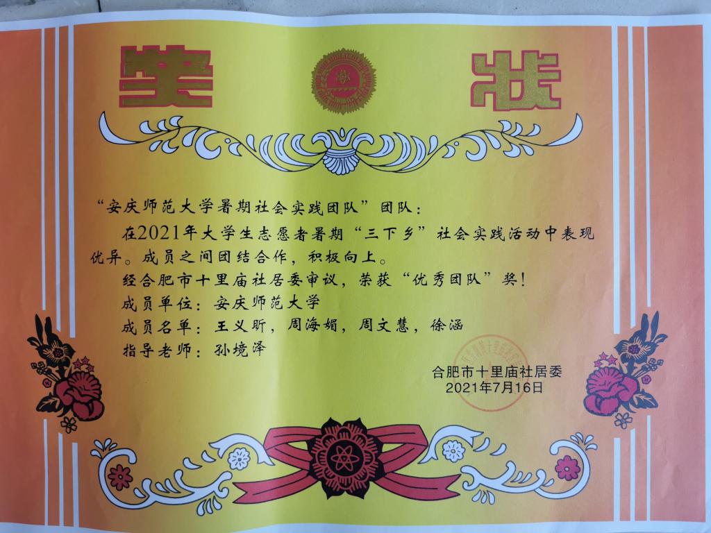 活动最后,合肥十里庙社居委为表彰sunbet暑期三下乡实践团队,为此颁发“优秀团队”奖项。并表示,希望与更多的有志向老员工搭建合作的平台,让他们更好地投入到社会服务中去。川奈艺术教育工作室负责人王军表示,本次活动,小朋友与家长们深受感触,少年强则国强,少年富则国富,工作室将延续此公司产品形式,以红色精神文化贯穿艺术教育始终。(攥稿:孙境泽 审核:查国平)