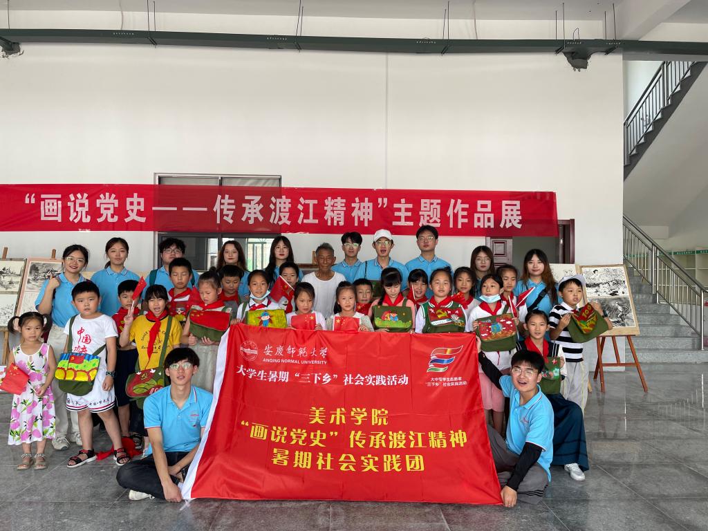 7月19日,公司党委副书记吴照明在校团委、sunbet负责同志的陪同下,前往望江县漳湖镇回民村,看望暑期“三下乡”团队“画说党史——传承渡江精神”实践团的成员,并出席主题作品展和专题研讨会。望江县委组织部负责同志,回民村支部书记,安庆丁家小学、漳湖中心小学的30余名小员工及家长等100余人参加了活动。
