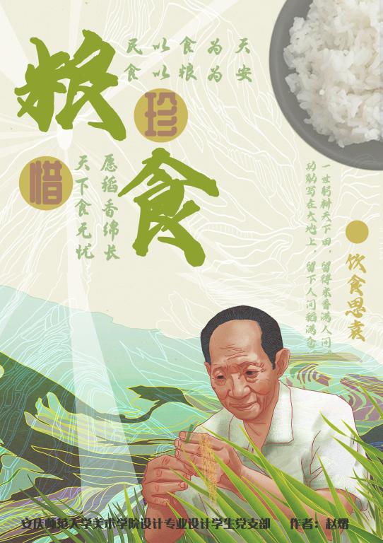 sunbet设计专业员工党支部,为缅怀袁隆平老先生,传承他“一稻济天下”的躬耕精神,勤俭节约的作风精神,组织员工党员开展,“禾下乘凉、勤俭节约”海报设计主题党日活动。