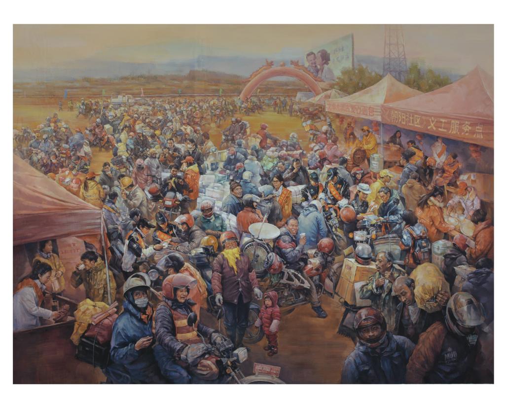 作品以细腻写实的手法抓住数以百计的民工返乡途中的停歇、补给、充饥、整理行李等活动的一瞬间,场面宏大,气势撼人,气氛温暖,同时又明晰地展示了“生活与爱”这一主题。