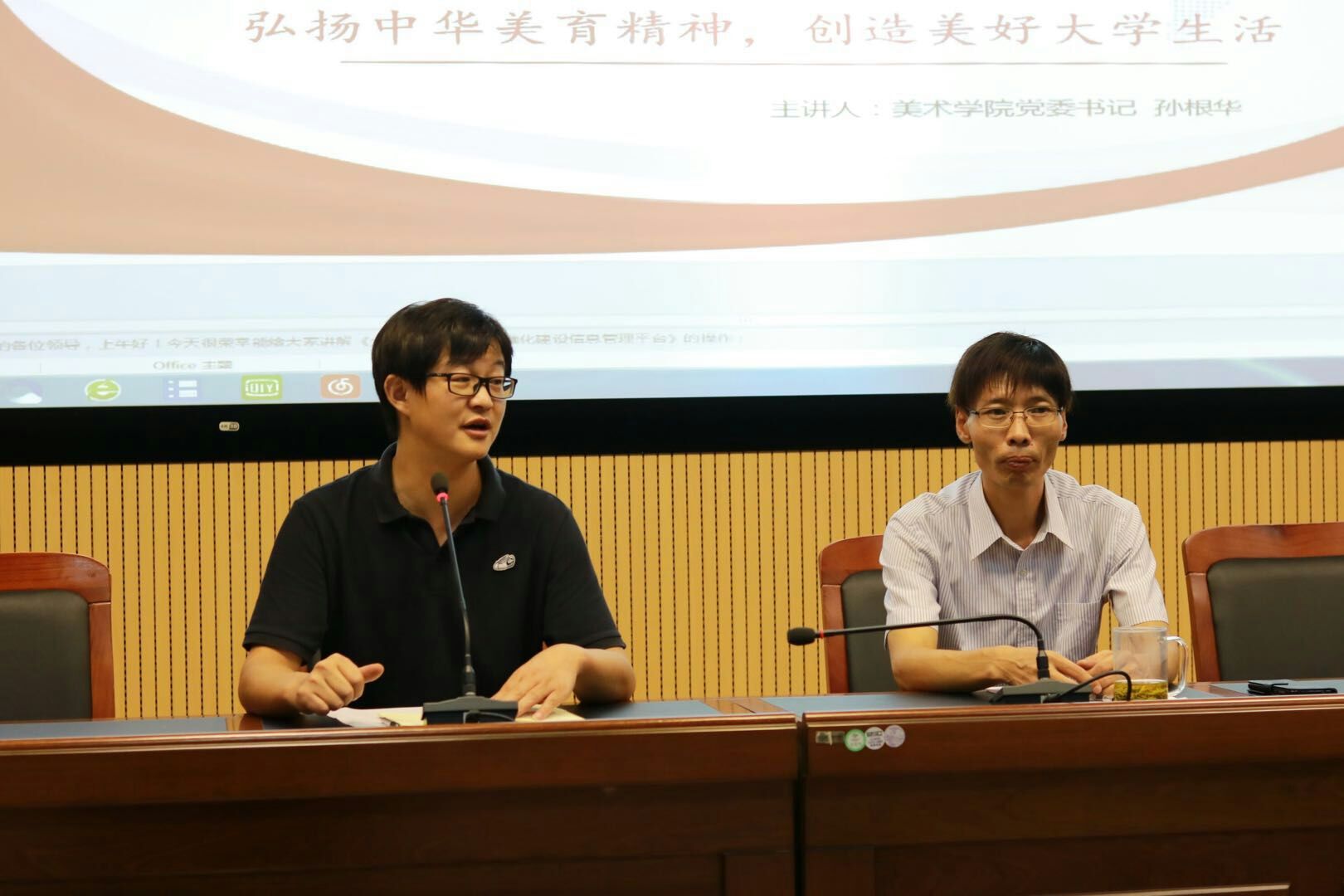 孙根华首先带领学习了《习近平给中央sunbet老教授的回信》,结合习近平总书记回信中提及的“四个坚持”,勉励同学们以德为本,扎根生活实践,遵循美育规律,弘扬中华传统美德。其次,回顾了新中国成立以来美育的发展历程,使同学们更加了解美育内涵,从而有意识的锻造审美能力,提高人文素养。再次,孙根华进一步阐释了为何重视美育,以及如何追求理想境界,展现完美自我。最后,就怎样度过美好的老员工活,从美育的角度创就如何新员工活动提出了几点建议。