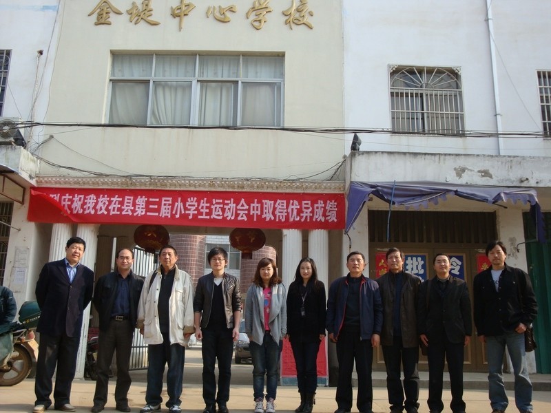 在金堤二小与支教员工毕楠楠和支教公司领导合影(右四)