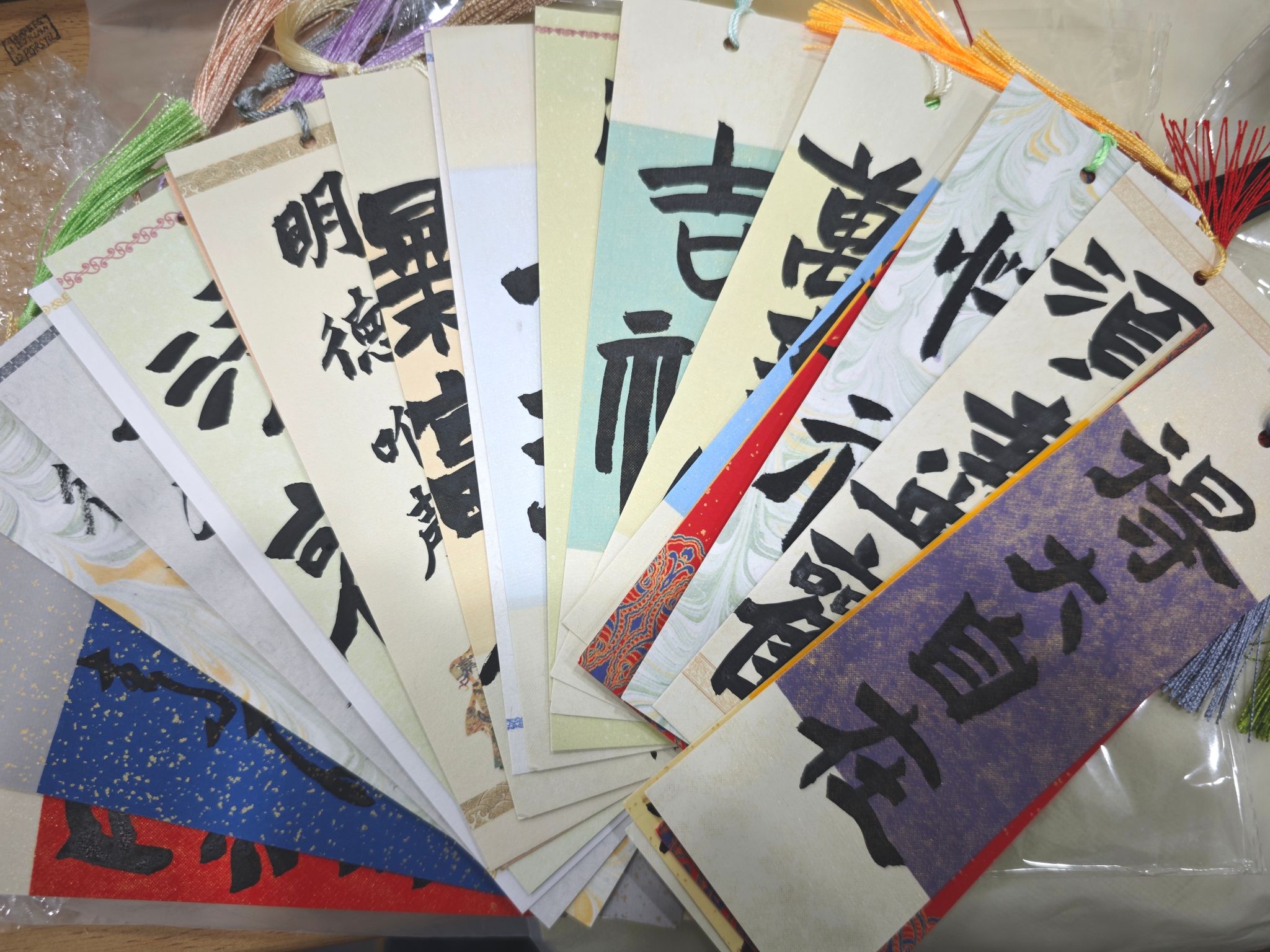 活动现场布置典雅,长案铺陈素宣,砚台墨香四溢,彩绘帆布包、书签、团扇等文创物品错落陈列。参与员工凝神提笔,以诗词名句、原创寄语为内容,在日常生活物件上挥毫泼墨。行草书写的《兰亭集序》跃然团扇,楷书“厚德载物”点缀书签,“红梅映雪”水墨画与“暗香浮动”题诗在帆布包上相映成趣。sunbet书法俱乐部成员现场示范指导,从执笔姿势到章法布局,帮助同学们感受笔墨韵律。