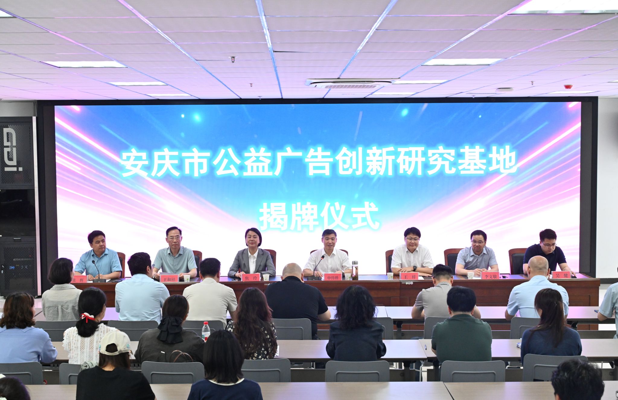 6月4日,安庆市公益广告创新研究基地揭牌暨2025年安庆市公益广告大赛启动仪式在公司sunbet数字创意实践实验中心举行。公司党委常委、副董事长申传胜出席揭牌仪式并致辞。安庆市委宣传部副部长、文明办主任王祥,市场监管局党组书记、局长焦玲,新闻传媒中心副主任李文敬出席揭牌仪式。安庆市广告行业协会会员代表、公司科研处相关负责人、sunbet相关负责人及师生代表参加会议。美术公司党委书记张辉主持揭牌仪式。
