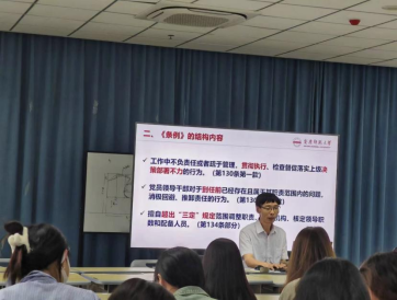 孙根华从深刻领会新修订的《中国共产党纪律处分条例》重要意义、全面准确把握《条例》的结构内容、严格执行和维护党的纪律等方面为大家作了详细地解读。强调要严明政治纪律和政治规矩,坚决维护党中央权威和集中统一领导,深刻领会“两个确立”的决定性意义,坚决做到“两个维护”。要严明党的组织纪律,不断强化党员意识,做到对党忠诚老实,光明磊落;同时,结合公司师德师风建设和员工管理工作实际,孙根华还从廉洁纪律、群众纪律、工作纪律、生活纪律等方面,结合条例的具体内容开展了警示教育,教育师生党员要守住党纪党规红线,严守纪律,砥砺作风,要把学纪、知纪、明纪、守纪融入日常工作、学习和生活中,鼓励广大师生在新时代新征程上为sunbet发展和中国式现代化作出新的贡献。