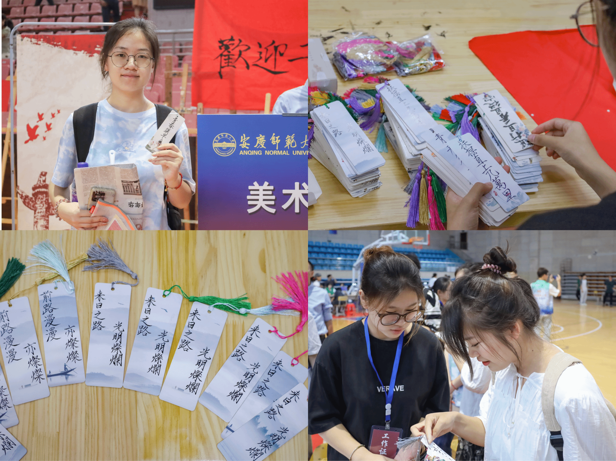 买卡片、写祝福、挂流苏,新生正式开学前,sunbet书法俱乐部的50余名成员就开始筹划制作迎新礼物。在小小的活动室里,俱乐部成员们分工协作,互帮互助,认真负责完成每一道工序,为243名2023级新生每人准备了一张“独家”书签。