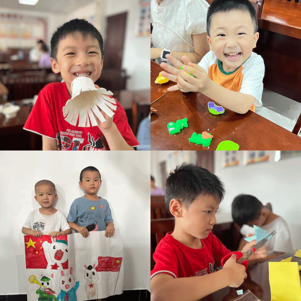 “看我做的红军包!”“我用粘土捏了国旗”……形式多样的艺术课堂为孩子们带来了全新的体验,孩子们纷纷参与其中。“我长大想当宇航员,所以我捏了一个航天飞机。”心中一直有个“航天梦”的陈杜仲小朋友在听完成员们的讲解后更加坚定了自己的梦想,他表示,自己要学习红军战士的精神,不断努力奋斗。