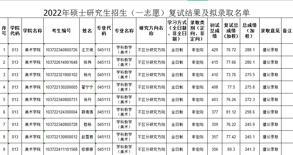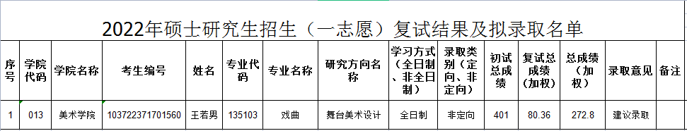 sunbet学科教学(美术)和戏曲专业舞台美术设计方向一志愿拟录取结果如下: