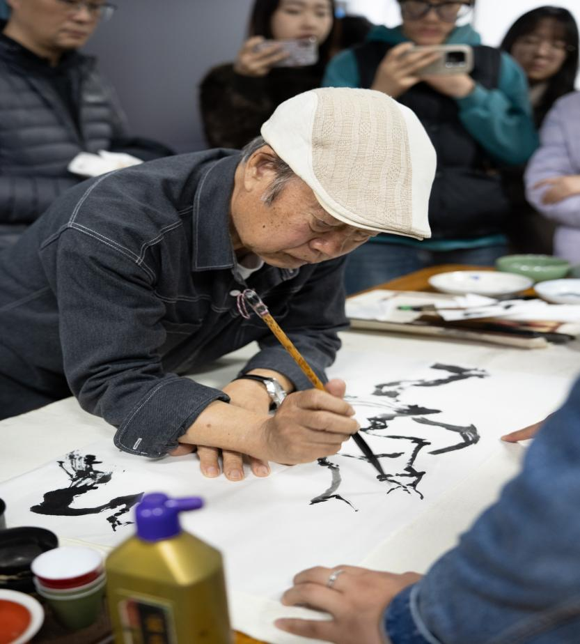 邓福星先生的报告从梅花的品种、中国画家画梅的源头、画梅史的发展脉络、画梅的技法演变史、文人与梅花的结缘、梅花与中国文化品格的象征等方面展开了深入的阐述。报告内容庞博、图文并茂、搜罗古今、娓娓道来,可谓极精微致广大,尽显大家的学术视野与风范,也让在场师生享受了一次难得的学术巡礼。接着邓先生亲自为在场师生进行了画梅示范。邓先生边示范边从题材、笔墨、构图、线条、形式、结构、用色、意境等方面对如何创作一张完整的梅花图进行了生动而完整的展示,体现了邓先生知行合一的治学理念、也让在场的师生收益丰厚。