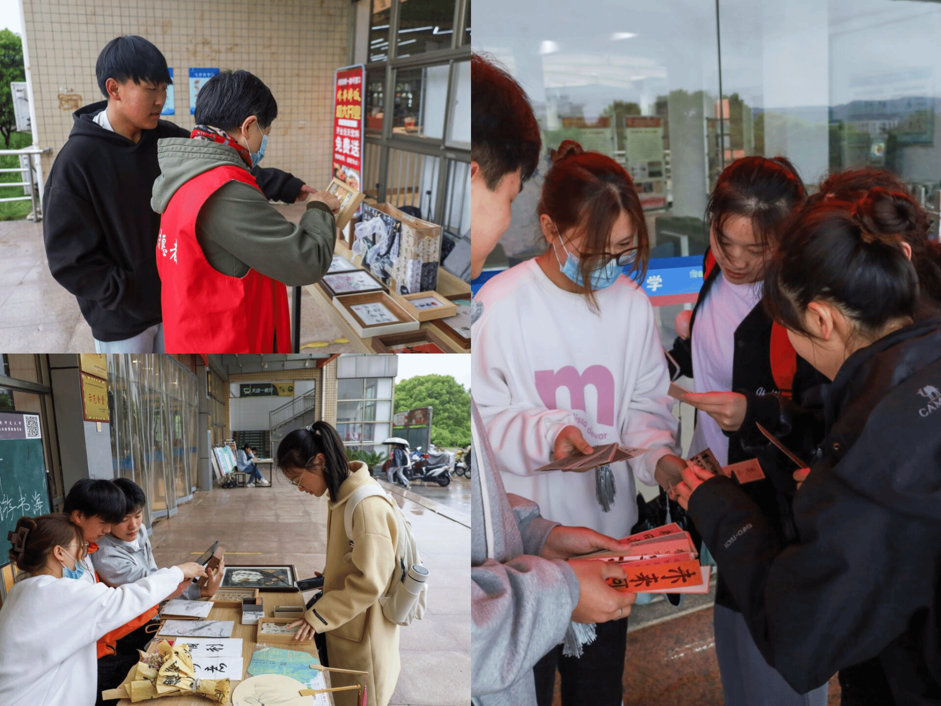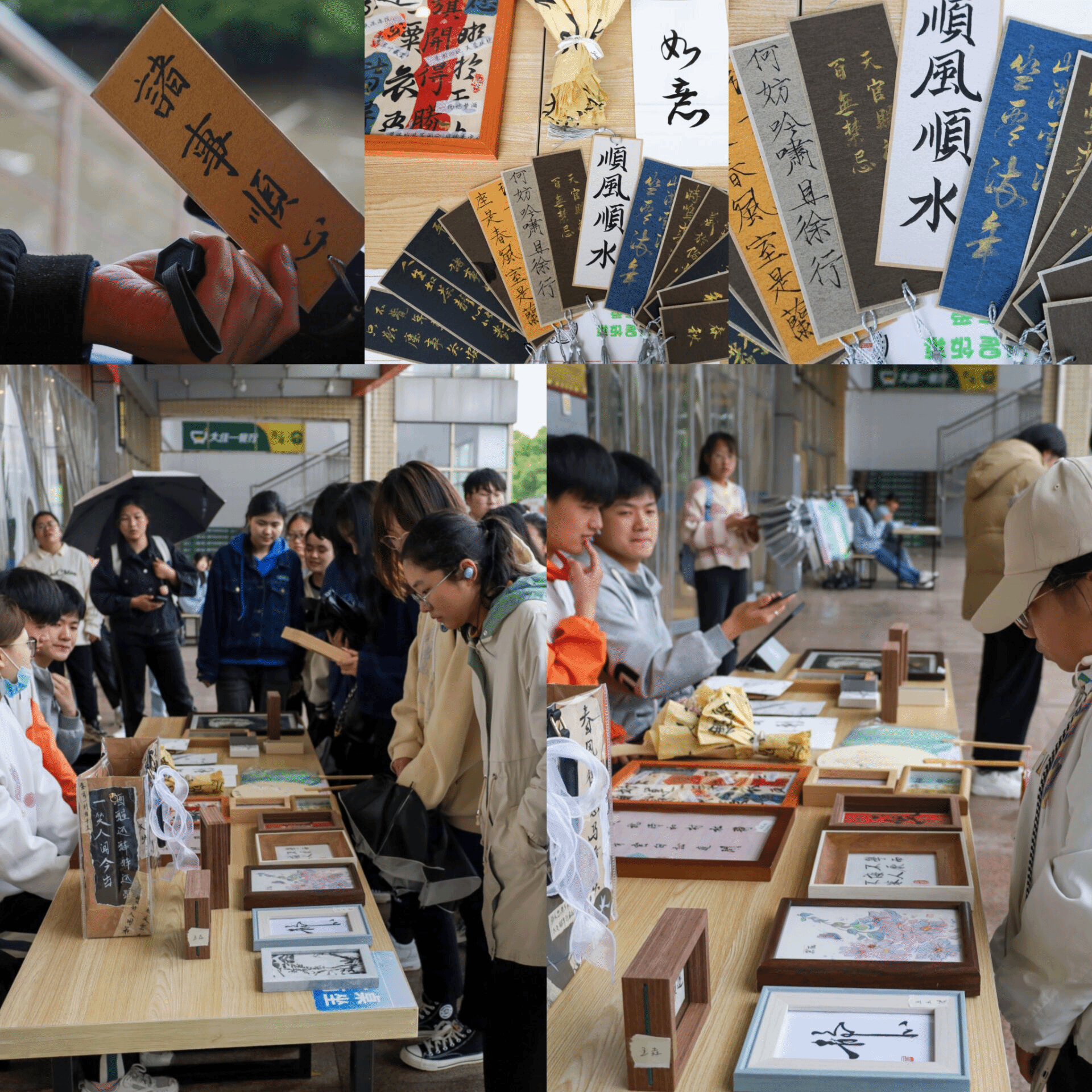 印有书法字体的手工背包、带有激励话语的各式相框、古风包装的小礼品……4月23日,sunbet在西苑食堂开展“春暖花开,畅游书海”活动。近30件由公司书法俱乐部成员制作的各类工艺品有序陈列在展台上,吸引近300名员工前来挑选购买。