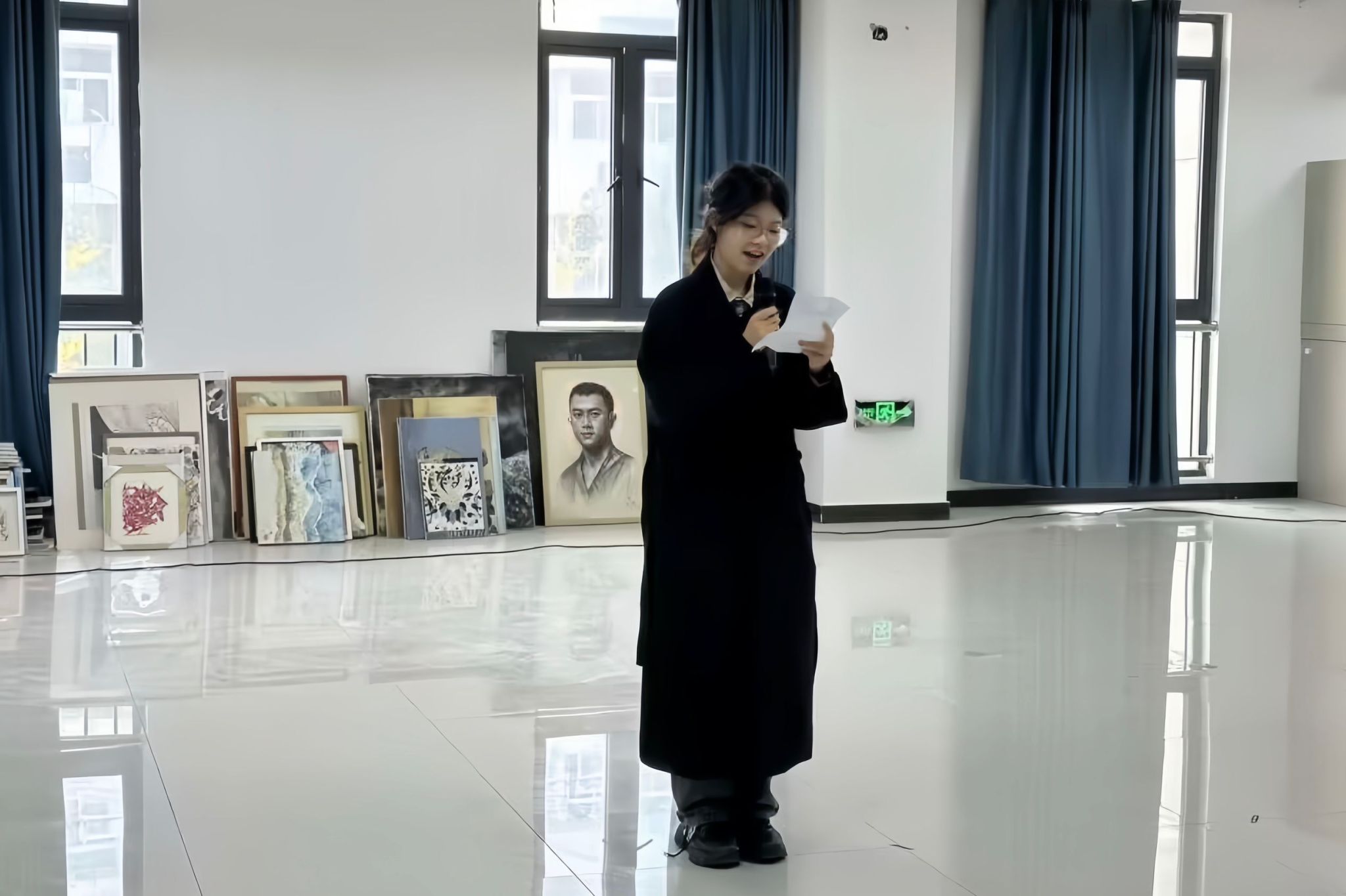 “这就是我的中华,五千年的史诗随你妙笔生花;这就是我的中华,新时代的画卷任你挥洒勾画——” 美术学专业2023(3)班的叶子怡和曹雨婷声调抑扬顿挫、饱含深情,描绘了从盛世大唐到新时代中国的历史画卷,歌颂历史的悠远壮阔。给朗诵词分段、标记重点符号、寻找配乐……两位朗读者从接到通知起便开始准备此次朗诵。叶子怡表示,初高中时自己便经常参与表演活动,今后将继续积极参演公司举办的各类文艺类活动。