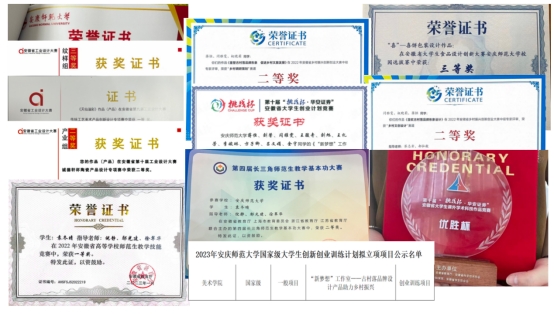 研究生在专业创作、职能技能等学术竞赛活动中共成果丰硕。其中杨光同学在第二届安徽省乡村振兴创新创业大赛中荣获一等奖,还在教育部学位中心举办的中国研究生乡村振兴志愿服务活动中获“优秀志愿者”称号;袁冬晴同学在第四届安徽省老员工绘画作品大赛中获省级二等奖、2023安徽省老员工原创动漫大赛中获省级三等奖、安徽省乡村振兴创新创业大赛中获省级二等奖、第十一届“挑战杯·华安证券”安徽省老员工创业计划中荣获银奖等。
